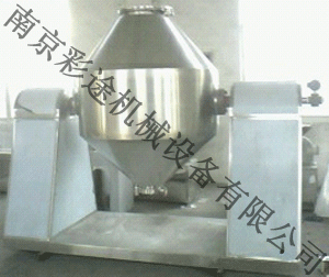 双锥回转真空干燥机为双锥形的回转罐体,罐内在真空状态下,向夹套内通入蒸汽或热水进行加热,热量通过罐体内壁与湿物料接触,湿物料吸热后蒸发的水汽,通过真空泵经真空排气管被抽走。由于罐体内处于真空状态,且罐体的回转使物料不断的上下内外翻动,故加快了物料的干燥速度,提高干燥效率,达到均匀干燥的目的。